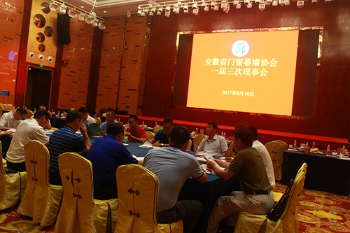 会议现场 8月18日下午,安徽省门窗幕墙协会一届三次理事会在江阴会市隆重召开。会长胡浩然、监事长葛大清、常务副会长邓志扬、张传发、桂双、魏立前、王德江、王金发、高邦财、孙雨、吴凤彬、王恩军、出席了会议。会议由协会秘书长沈运斌主持。 会议听取了《安徽省门窗幕墙协会2017年上半年工作以及下半年工作计划汇报》;此次理事会共商议了六项议程,其中包括探讨一届二次理事会会议纪要中需要解决的问题,商议安徽省门窗幕墙协会技术委员会成立方案,汇报党建工作等一系列议程。 会上,与会各位理事也积极发言,对自身发展及对协会工作建言献策,大家对协会帮助企业发展壮大表示感谢,并纷纷表示今后将继续支持、参与协会的各项工作,支持协会的发展。 会长胡浩然在热烈的掌声中作了重要讲话。在讲话中,他充分肯定了协会2017年上半年所做的工作,以及回顾了协会发展经历的几个阶段。最后,胡浩然会长对今后工作提出一点希望:希望协会秘书处按照中央要求,建立自己的党组织,同时增强服务意识、提升服务层次和能力,创新工作方法,积极对接国家、兄弟协会,多汇报工作及汲取先进经验,做到让会员满意、自己满意。
