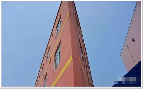郑州天明路与红专路向北100米路东, 有一栋建筑,刚刚建成不久的3层楼房, 这栋楼外墙宽度最窄的地方只有20公分, 从南侧看该栋楼房时, 由于视觉的关系, 就像一张薄薄的“纸片”一样。