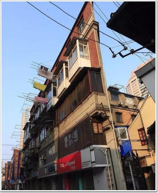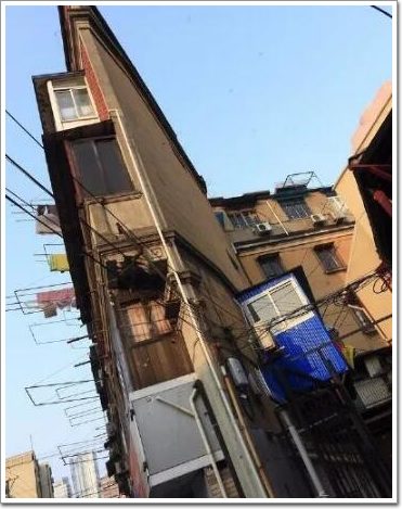 从侧面30°角看起来, 这幢楼真的和纸片差不多, 纸片楼里住着40多户人家。