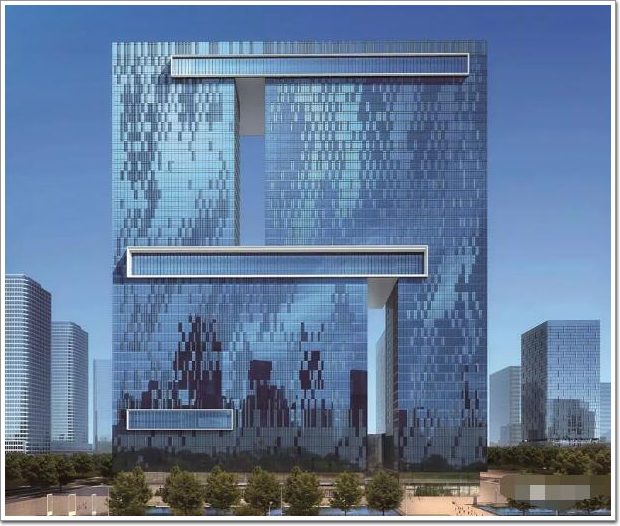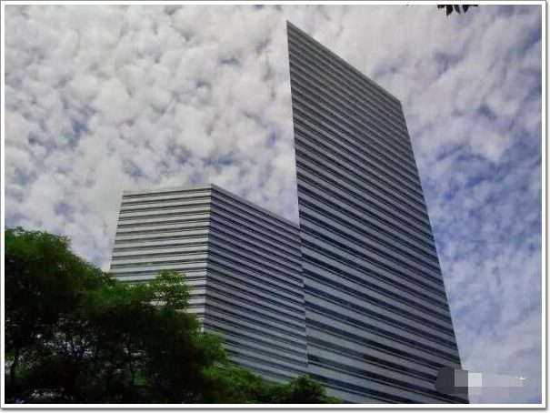 建筑高200米,宽165米, 因为“薄如纸片”,被网友戏称为“纸片楼”。