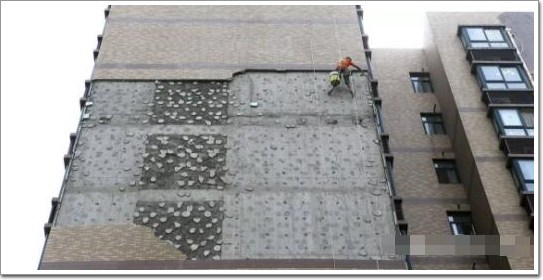 据了解,外墙保温层出现墙面问题的时间,一般会在施工完毕后一段时间,或经冬夏气温循环变化后出现,其隐藏的质量或施工问题引发了这些问题。一般来说会出现四大问题。 一、外墙保温层脱落 因为使用材料的质量问题、施工过程不注意等原因,外墙保温板材容易出现移位、空鼓、脱落,浆体保温层存在空鼓和脱落。如果没有及时处理,墙面的保温效果会大打折扣。 原因: 1、基层结构因素。框架结构外墙在砼梁柱和砌体接缝处,易发生因砌体变形而造成的保温层破坏。脚手架洞口等未砌实,形成保温层局部基层不牢而破坏。外墙装饰构件固定不牢、移位,形成推拉作用,使保温层局部空鼓、产生裂纹后长期渗水,最终导致保温层脱落; 2、抗压措施不当。保温板表面荷载过大,或对负风压抵抗措施采用不合理,如沿海地区或高层建筑外墙采用非钉粘结合的粘结方式,极易使保温板块被风压破坏而空鼓脱落; 3、墙体界面处理不当。除黏土砖墙外,其他墙体均应用界面砂浆处理后再涂抹浆体保温材料,否则易造成保温层直接空鼓或界面处理材质失效,形成界面层与主体墙空鼓,连带形成保温层空鼓。保温板表面也需要使用界面砂浆处理,否则也会造成保温层局部空鼓。