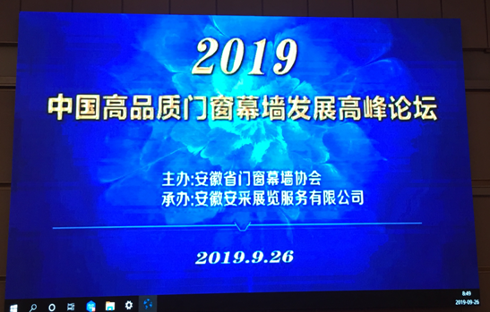 践行高品质发展 献礼祖国70华诞---2019高品质门窗幕墙高峰论坛在合肥成功举办