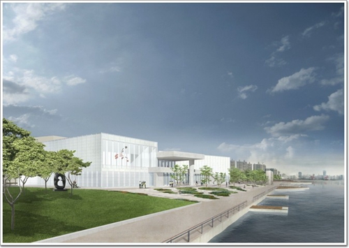 项目座落于黄浦西岸宽阔的滨江绿化带的最北端,总建筑24000 平方米,计划于2019年建成并对外开放,建成后将成为浦江西岸徐汇滨江规划区的一道独特风景。西岸美术馆是上海黄浦江西岸地区总体规划中的一座重要建筑。建筑方案的总体构思旨在创造一处独具特色的公共场所,使游客在参观美术馆的同时,还可饱览滨江美景,远眺市区风貌。大尺度景观视窗设计为馆内游客提供了欣赏上海中心城区、黄浦江与公园的绝佳视野。方案首先从场地分析入手,着眼于建筑与周边环境的相互渗透融合。