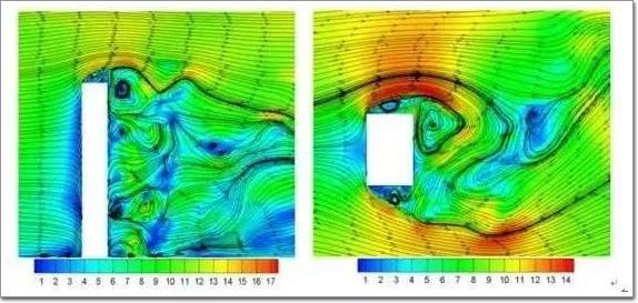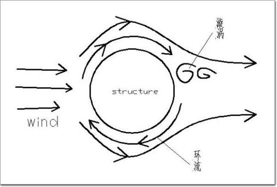 原理是这样的。当风从顺风向吹来,在建筑物后部会形成漩涡并脱落,其脱落现象与雷诺数大小、截面形状有关。建筑后方两侧的漩涡以一定频率交替脱落,引起空气的环流。由伯努利方程我们知道,上下表面形成压力差。随着漩涡在建筑物后面两侧交替脱落,振动力的方向也以一定频率改变,横风向的振动就产生了。