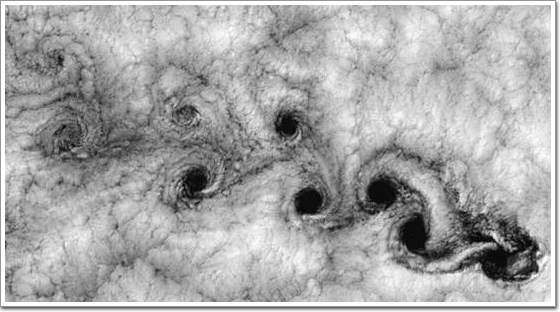 从太空俯瞰智利海岸的"卡门涡街"