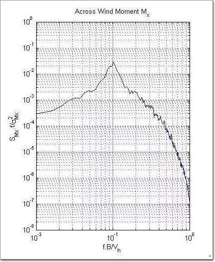 上图给出了典型的脉动响应的功率谱,那个尖峰就是属于共振响应的。尖峰对应的频率就是结构的固有频率。对上面功率谱在频域上积分便得到脉动响应的均方差。