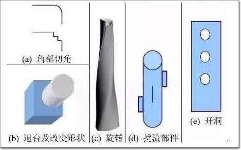 一般的方案修改建议和抗风措施包括,对建筑表面进行处理(如表面增加竖条以改变粗糙度)、调整整体或部分体型以改变所受气动荷载(词条“动荷载”由行业大百科提供)、设置阻尼器等。