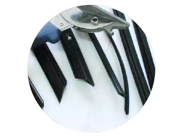 密封胶条角部处理, 胶条在角部连接处常用的处理方法有 一、热熔法 常用于TPE、TPV、PVC等热塑性材料, 角部连接处经过高温处理使胶条粘结, 这种处理会使粘结处严重变硬, 粘结强度较低,美观度差, 该方法正逐渐被淘汰。