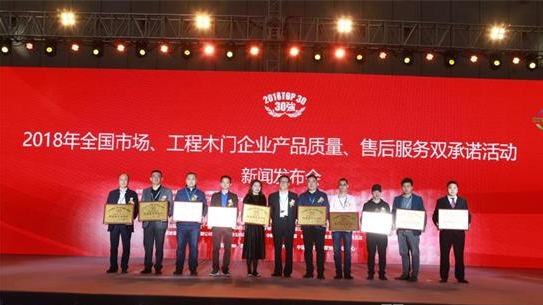 2018年3月10日,由中国木材与木制品流通协会、中国门窗博览会主办,中国木材与木制品流通协会木门窗专业委员会、广东省门业协会承办的“2018年全国市场、工程木门企业产品质量、售后服务双承诺活动”新闻发布会暨中国木门窗行业年会在广东(潭洲)国际会展中心盛大召开。