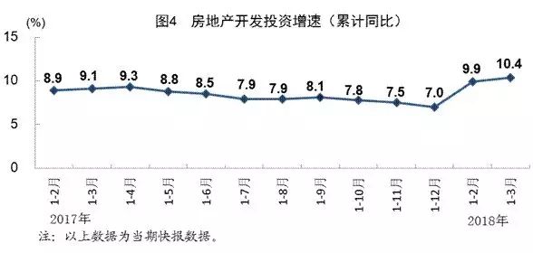 一季度,全国房地产开发投资21291亿元,同比增长10.4%,增速比1-2月份加快0.5个百分点,比上年同期加快1.3个百分点,其中住宅投资增长13.3%。房屋新开工面积34615万平方米,同比增长9.7%,其中住宅新开工面积增长12.2%。