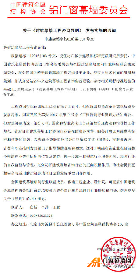 关于《建筑幕墙工程咨询导则》发布实施的通知
