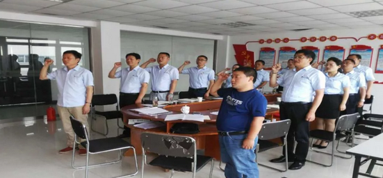 支部书记储险峰带领全体党员重温入党誓词。