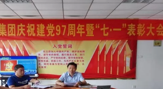 7月1日上午,雄峰集团党支部隆重召开庆祝建党97周年暨“七一”表彰大会。集团党支部书记储险峰主持会议。潜山县党建工作指导员葛良清、公司全体党员和入党积极分子参加了会议。