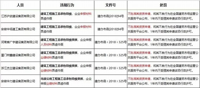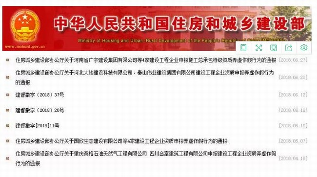 2016年11月,江西省东南建筑工程有限公司、江西国新建设工程有限公司等4个公司的项目,均存在利用虚假材料、以欺骗的手段取得一级资质的行为。