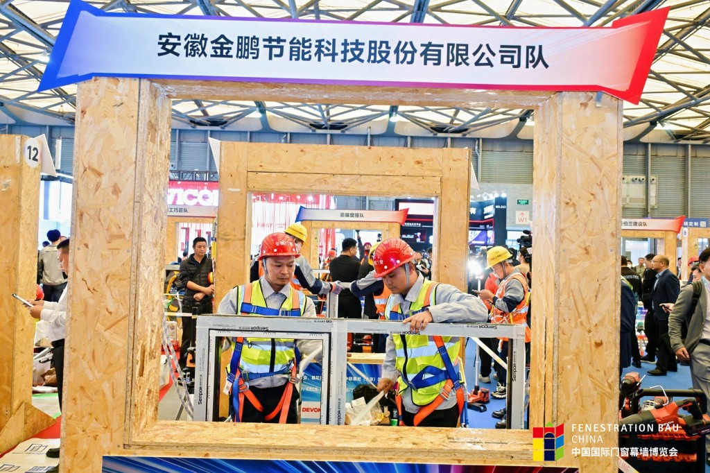 比赛中,金鹏阳光门窗团队沉着应对,严格遵循安装标准,从测量校准到部件组装,每一步均精准高效。