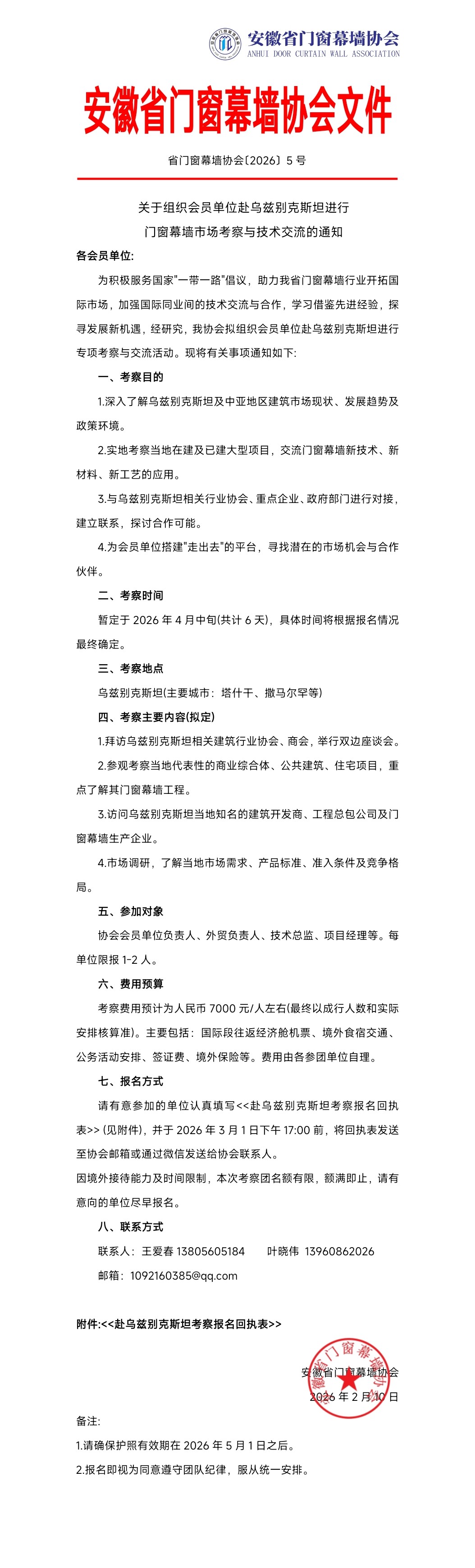 推开“中亚之窗” | 关于组织会员单位赴乌兹别克斯坦进行门窗幕墙市场考察与技术交流的通知